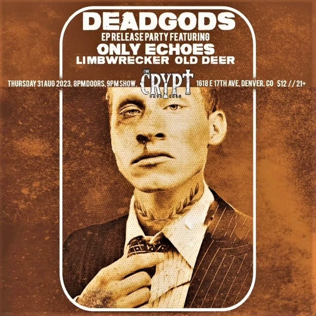 Josh ~ We’re playing The Crypt in Denver for the firs time on August 31st opening DEADGODS EP release and then we’re playing on September 9th at the Trailside in Thornton. We’re also going to be in the studio in the fall recording what will be our first official release.